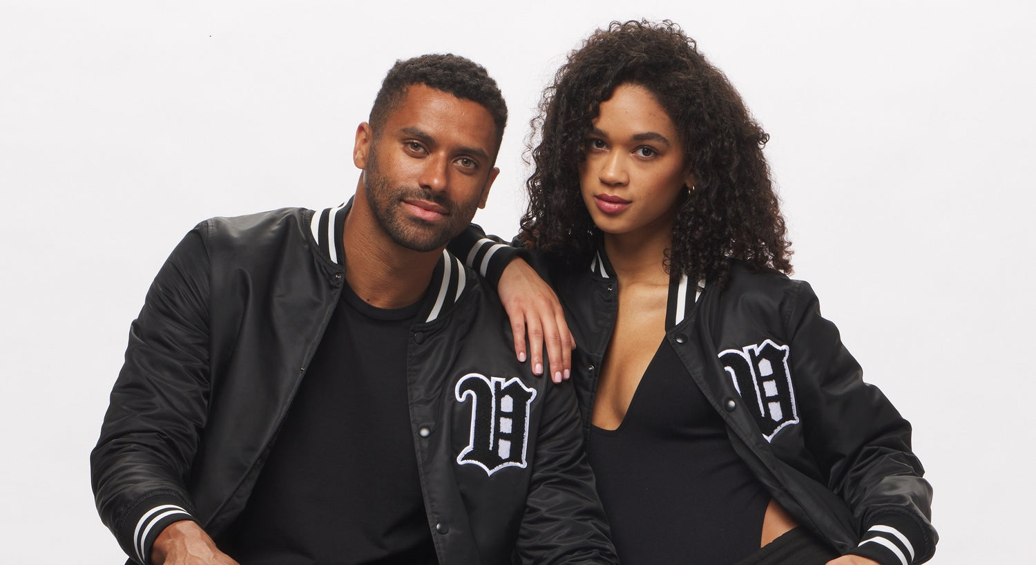 Men's - House of V - Black Varsity Chenille Patch Nylon Varsity Jacket