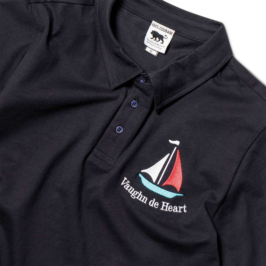 Men's - Voilier - Navy Blue Sailboat French 3 Button Polo