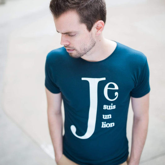 Men's - Je Suis un Lion Navy Blue Crew Neck T-Shirt